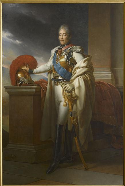 portrait (Charles X, homme, en pied, de trois-quarts, cuirasse, casque, uniforme, cavalerie, sabre, Ordre du Saint-Esprit, Ordre de la Toison d'or)