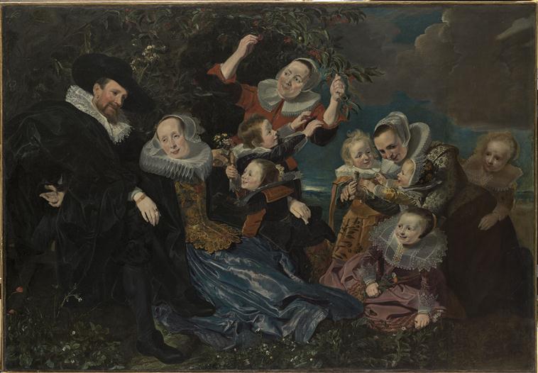 portrait collectif (homme, femme, garçon, fillette, serviteur, partie de campagne, cueillette, joie, vêtement, col)