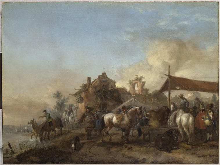 POP | Plateforme ouverte du patrimoineHALTE DE MILITAIRES FAISANT BOIRE LEURS CHEVAUX