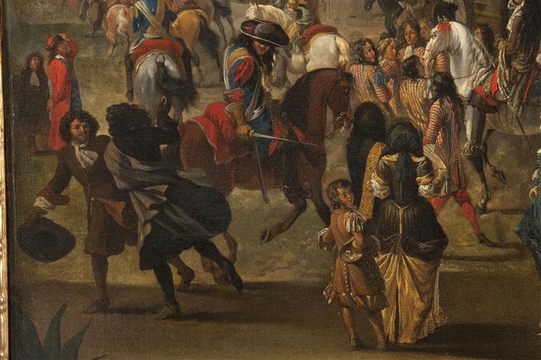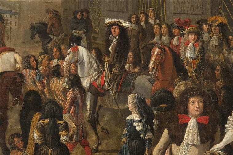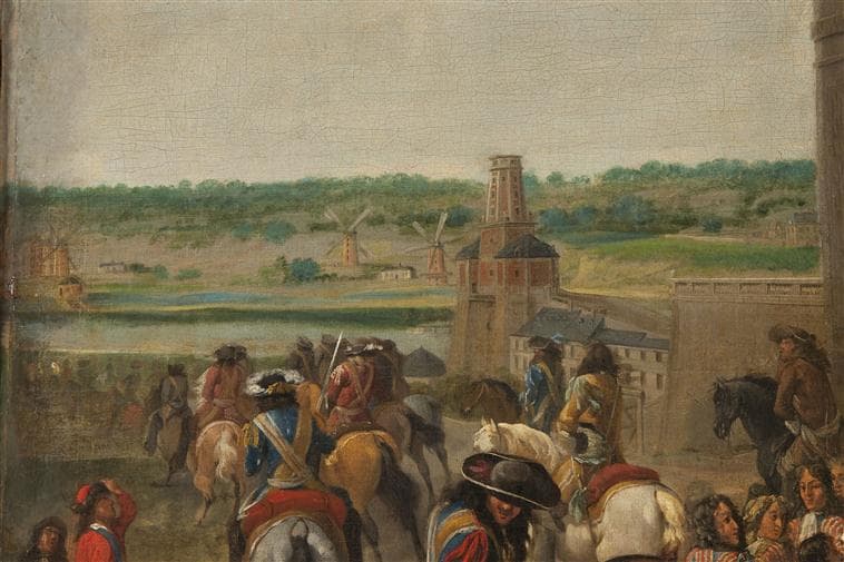 scène (Louis XIV : équestre, cheval, chevalprince héritier : Orléans Philippe d', attroupement, Versailles, moulin, Thétis)