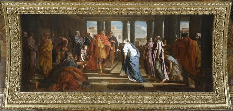 commandé par Louis XIV en 1672 pour le cabinet de Jupiter du grand appartement du roi au château de Versailles ; réplique de Coypel conservée au musée du Louvre (inv 3477)