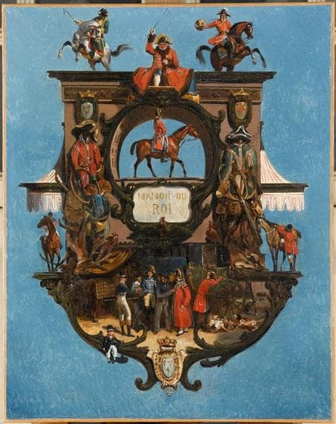 étude de Bard conservée au musée de Versailles (MV 6947) ; pour le frontispice du projet d'album de la Maison du roi