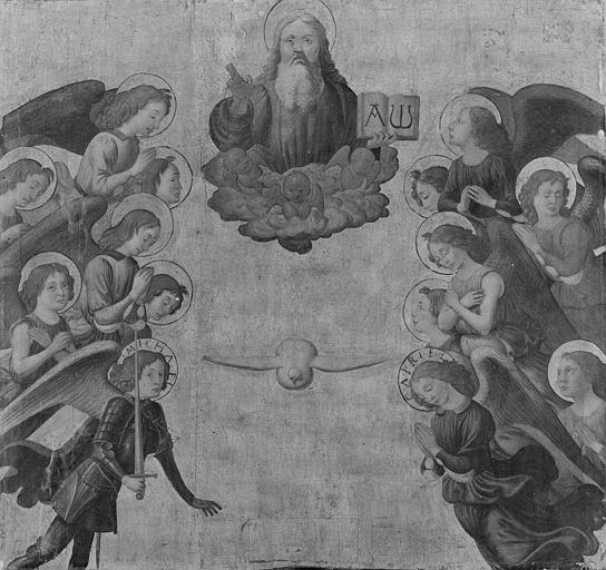 figures bibliques (Dieu le père : vieux, Saint-Esprit : colombe, nuage, saint Michel, saint Gabriel, ange)