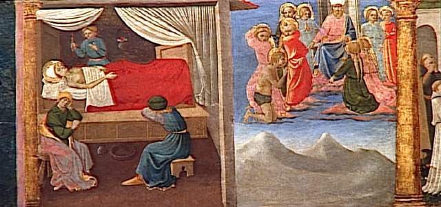 GHIRLANDAJO RIDOLFO (BANDINI) ; ANGELICO FRA (MARCHESI, CAMPANA, CORNU, REISET, MILANESI, HAUTECOEUR) ; GOZZOLI (JACOBSEN) ; ANGELICO FRA, ECOLE DE (PILLION) ; GOZZOLI, ATTRIBUE (SEYMOUR DE RICCI) ; MICHELINO DOMENICO DI (VAN MARLE, BERENSON) ; STROZZI ZANOBI (SALMI, COLLOBI-RAGGHIANTI)