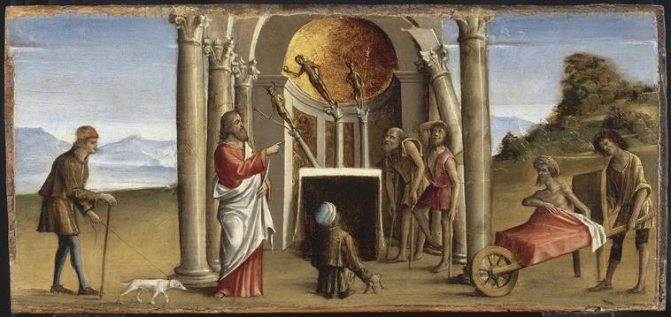 panneau de prédelle d'un retable de l'église San Domenico de Ravenne (?) ; autres éléments : troisième élément de prédelle (seconde partie du miracle de saint Barthélémy et flagellation de saint Barthélémy) dans la collection Johnson à Philadelphie, panneau central (Vierge et l'enfant entre quatre saints et deux anges) à la Brera de Milan ; numéro d'inventaire des autres éléments : MI 591