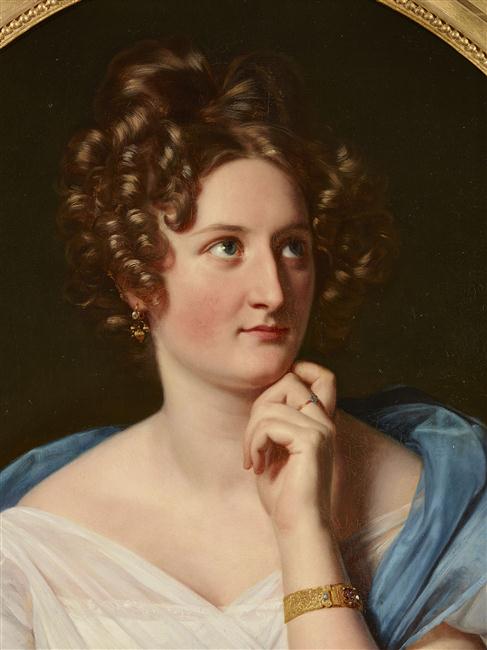 portrait (Gay Delphine, femme de lettres, à mi-corps, de trois-quarts, robe, coiffure, femme, Girardin Delphine de)