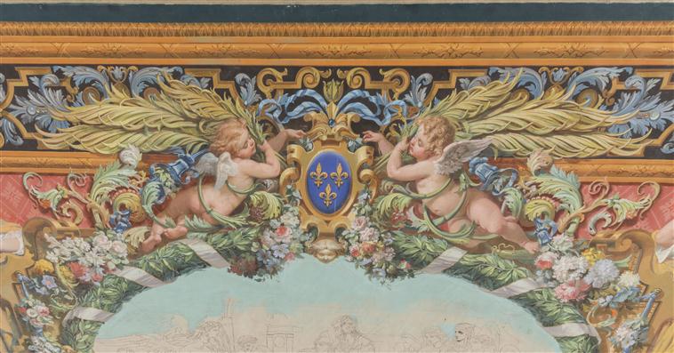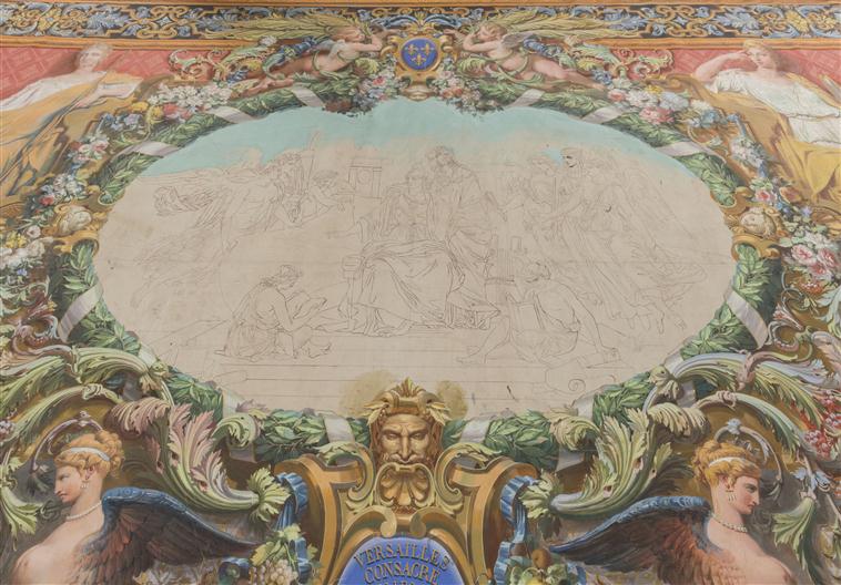 scène historique (fondation : musée, Versailles, allégorie : les arts, figure : architecture, figure : musique)