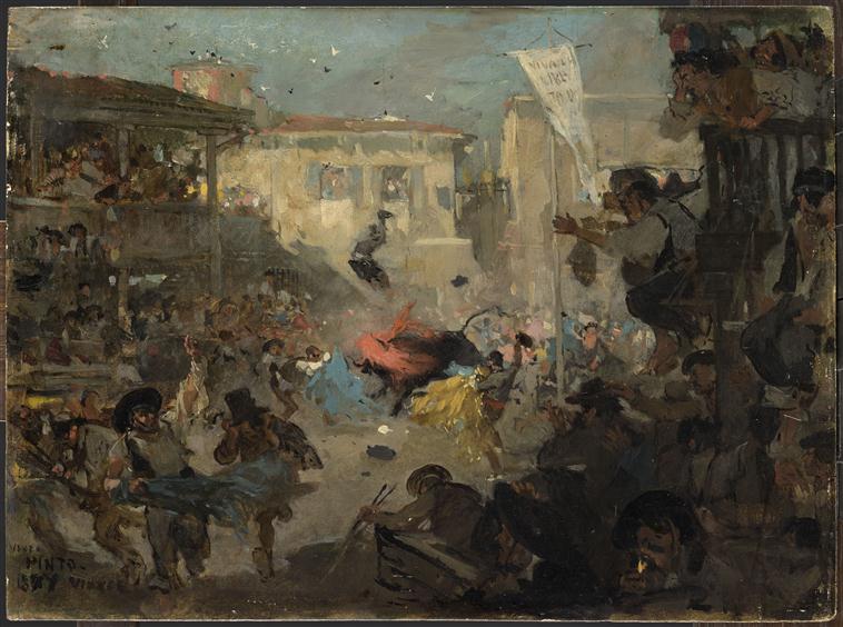 POP | Plateforme ouverte du patrimoineCOURSE DE TAUREAUX IMPROVISEE SUR UNE PLACE PUBLIQUE D'UNE VILLE D'ESPAGNE
