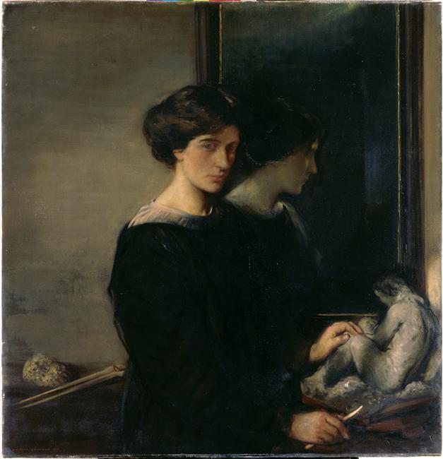 portrait (Bruce Miss, femme, à mi-corps, de trois-quarts, Anglais, sculptrice, art de la sculpture, statue, objet : art de la sculpture, miroir)