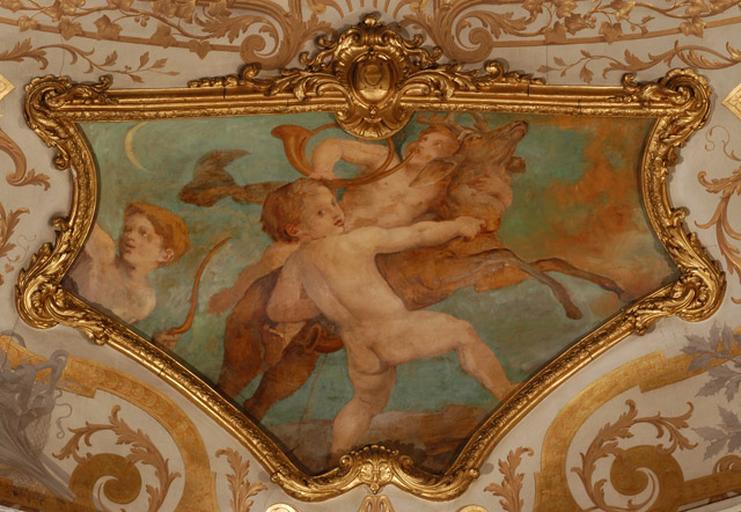 figures mythologiques (putti, attribut : Diane)