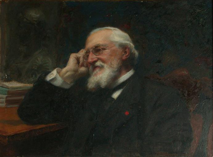 portrait (Lafenestre Georges, homme, à mi-corps, accoudé, de trois-quarts, lunette, chaise, livre, décoration : Ordre de la Légion d'honneur) ; relief