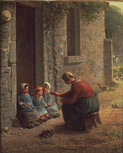 Paysanne donnant à manger à ses enfants ; dit aussi La Bécquée