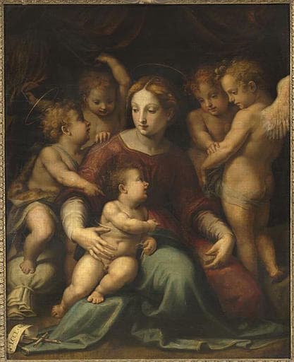LA VIERGE, L'ENFANT JESUS, SAINT JEAN ET ANGES