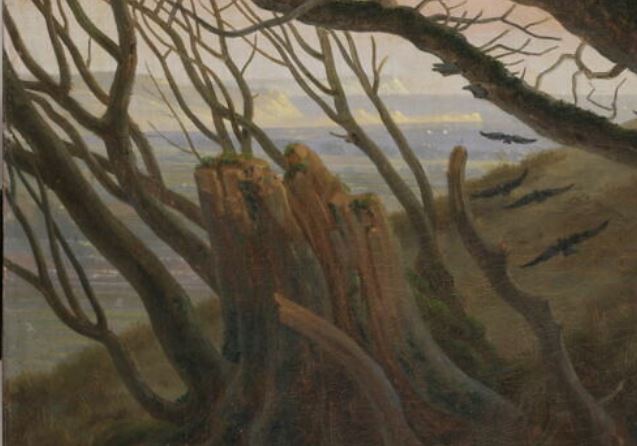 paysage (arbre, corbeau, bord de mer, Baltique, effet de soleil)