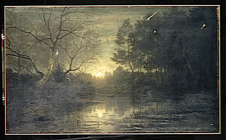 paysage (mare, forêt, Fontainebleau, feuillu, nuit, clair de lune, hiver)