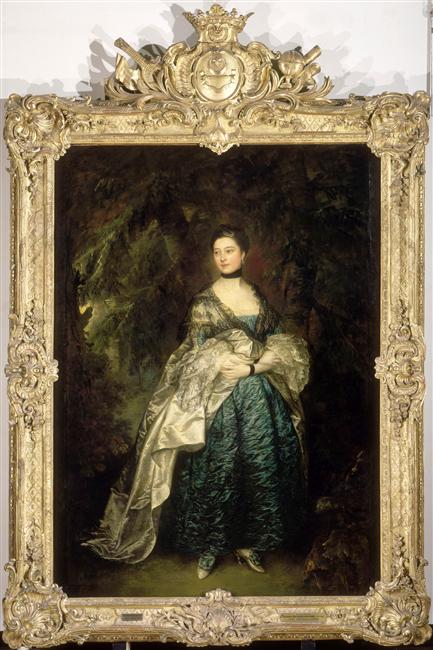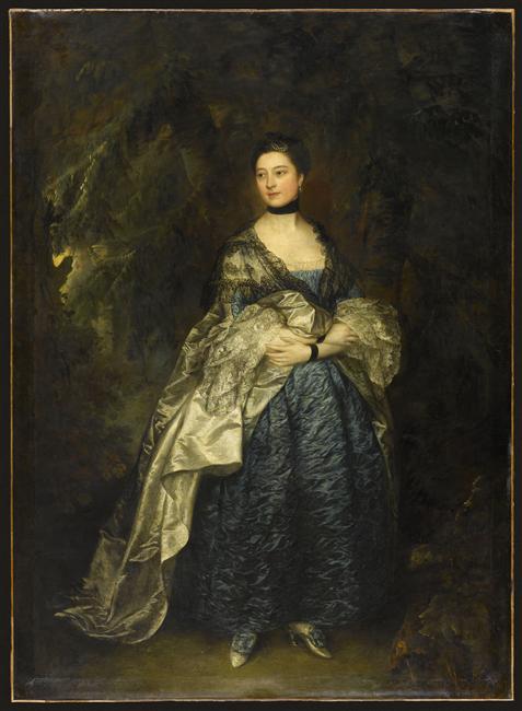 portrait (Alston lady Gertrude, femme, en pied, de trois-quarts, Anglais, effet de tissu) ; fond de paysage