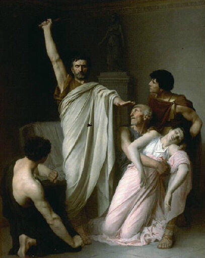 scène historique (Brutus, serment, poignard, Lucrèce, agonie, homme, portage : Lucrèce, statue)