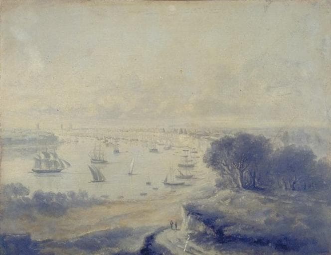 paysage (Garonne, bateau à voiles) ; fond de paysage (Bordeaux)