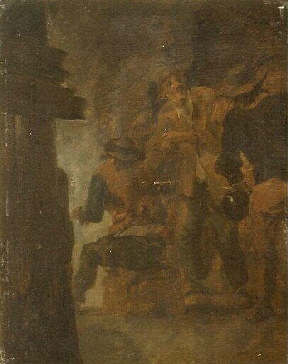 POP | Plateforme ouverte du patrimoineTROIS HOMMES DANS UN INTERIEUR RUSTIQUE ; TROIS PERSONNAGES VUS DE DOS (ancien titre)