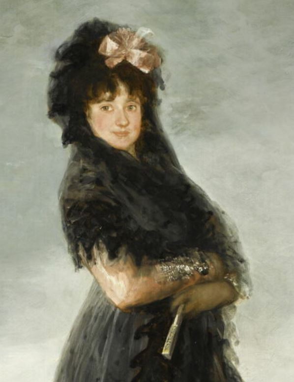 portrait (Waldstein Mariana, Santa Cruz marquise de, femme, en pied, de trois-quarts, Espagnol, éventail) ; fond de paysage