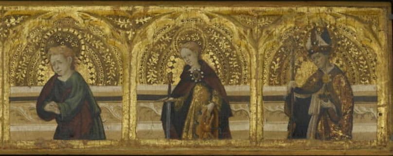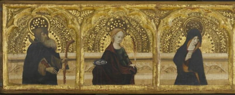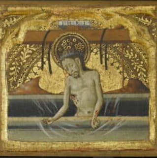 CHRIST DE PITIE ENTOURE DE SAINT ANTOINE DE PADOUE, SAINTE AGNES, LA VIERGE, SAINT JEAN, SAINTE CATHERINE ET UN SAINT EVEQUE