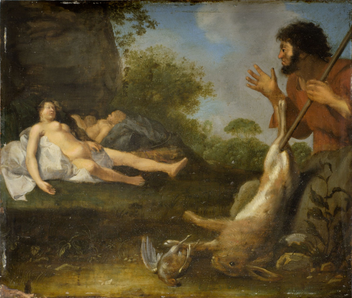 scène (Ephigène, femme, sommeil, nu, Cimon, homme, chasse, étonnement, paysage)
