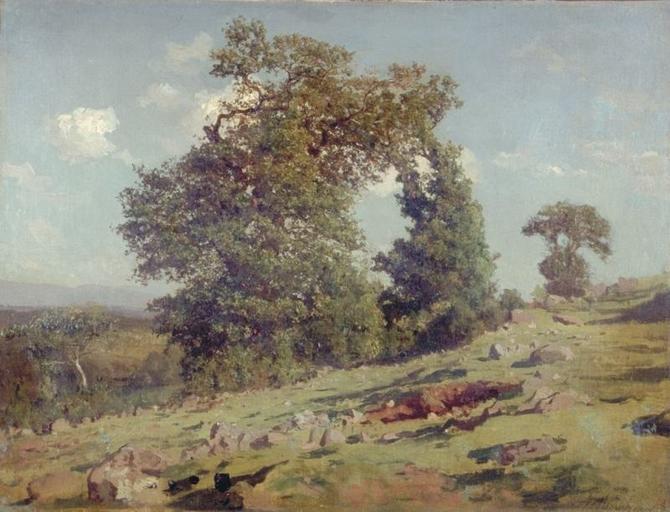 paysage (chêne, lande, rocher, colline, Mauriac)