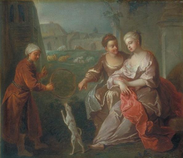 Attribué par J. Vilain (cf. bibliogr.) à J. F. de Troy, fils de François, le tableau est ensuite donné à F. de Troy par P. Rosenberg (1980). D. Brême (cf. cat. 1997 pp. 170 et 172) le répertorie parmi les dernières oeuvres de cet artiste, dans les années 1720 : il remarque l'influence de Watteau et Lancret et aussi de Jean-François qui collabore à plusieurs reprises avec son père à cette époque : ce tableau ' ...se ressent particulièrement de cette interprétation des styles du Vieux et du Jeune de Troy '