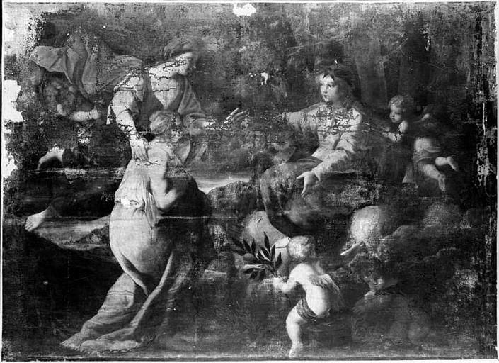 scène (apothéose, Ovide, jeune homme, homme de lettres : poésie, nuée, vieux, divinité, angelot)