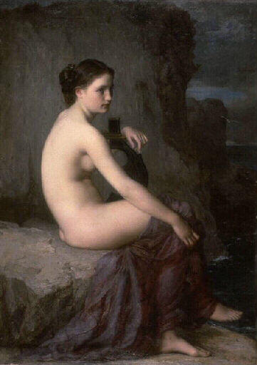 figure (femme : nu, assis, de profil) ; lyre