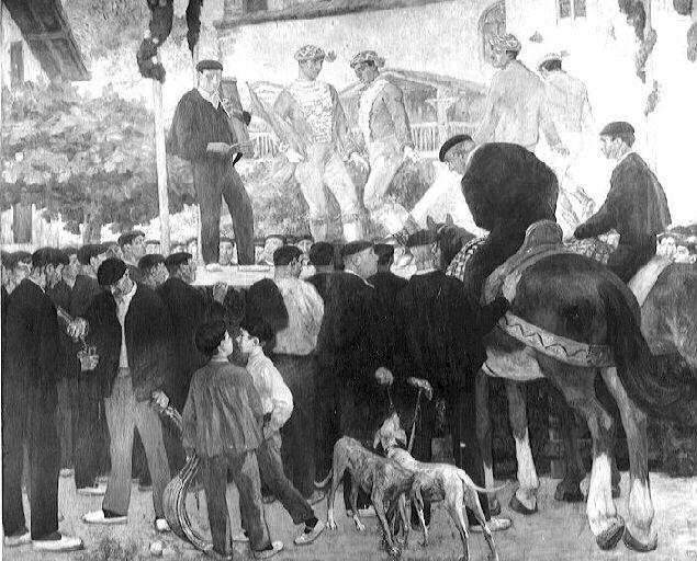 scène (fête, Pyrénées-Atlantiques d, danse, musicien, enfant, objet : jeu de balle, cavalier, chien)