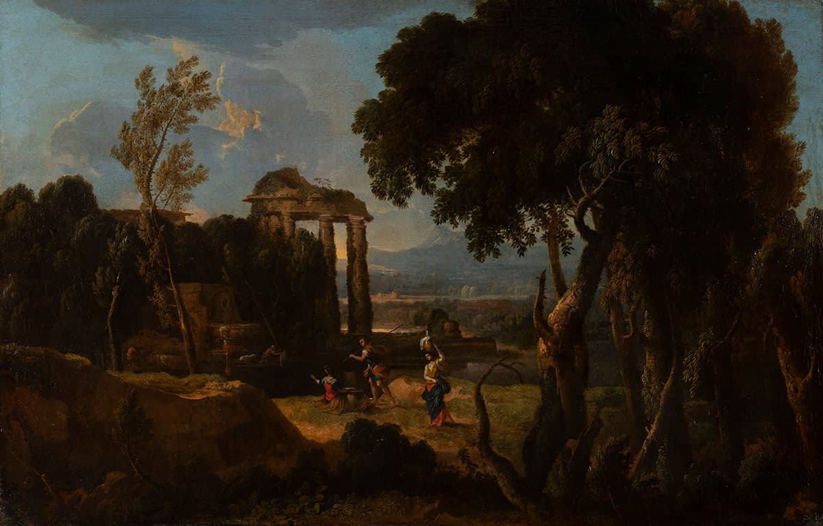 Paysage à la tholos en ruine et personnages