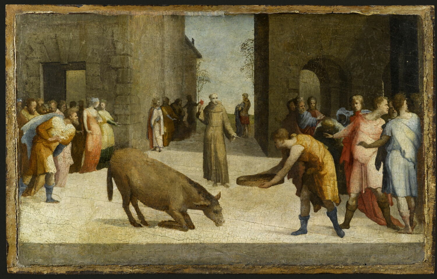 scène historique (saint Antoine de Padoue, miracle, mulet, place)