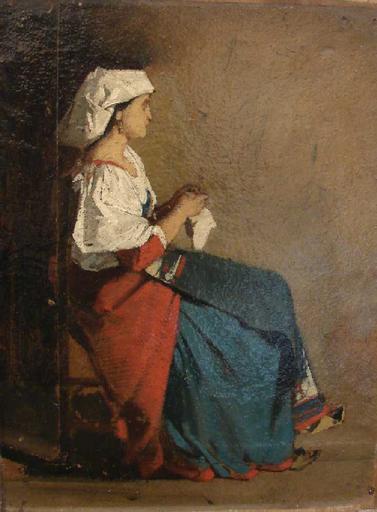 Femme assise, tricotant ; Italienne assise, tricotant