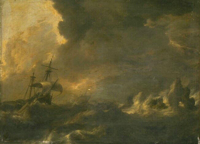 paysage (mer, tempête, vague, voilier, Hollande, nuage, rocher)