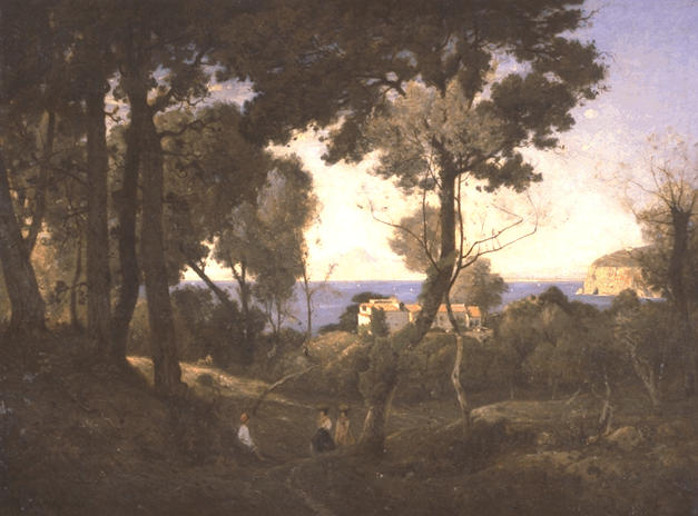 paysage (feuillu, golfe : Naples, mer Tyrrhénienne, volcan) ; personnage