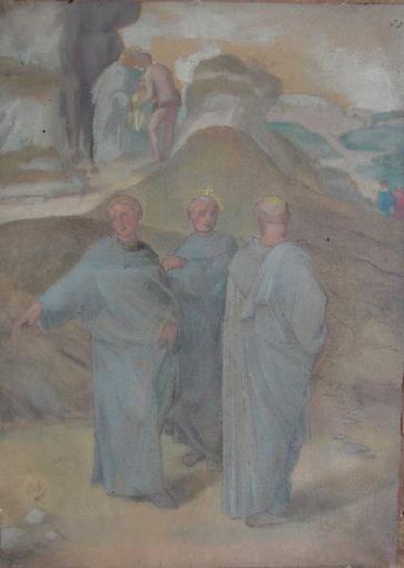 scène historique (saint Philippe Benizzi : miracle, malfaiteur) ; fond de paysage