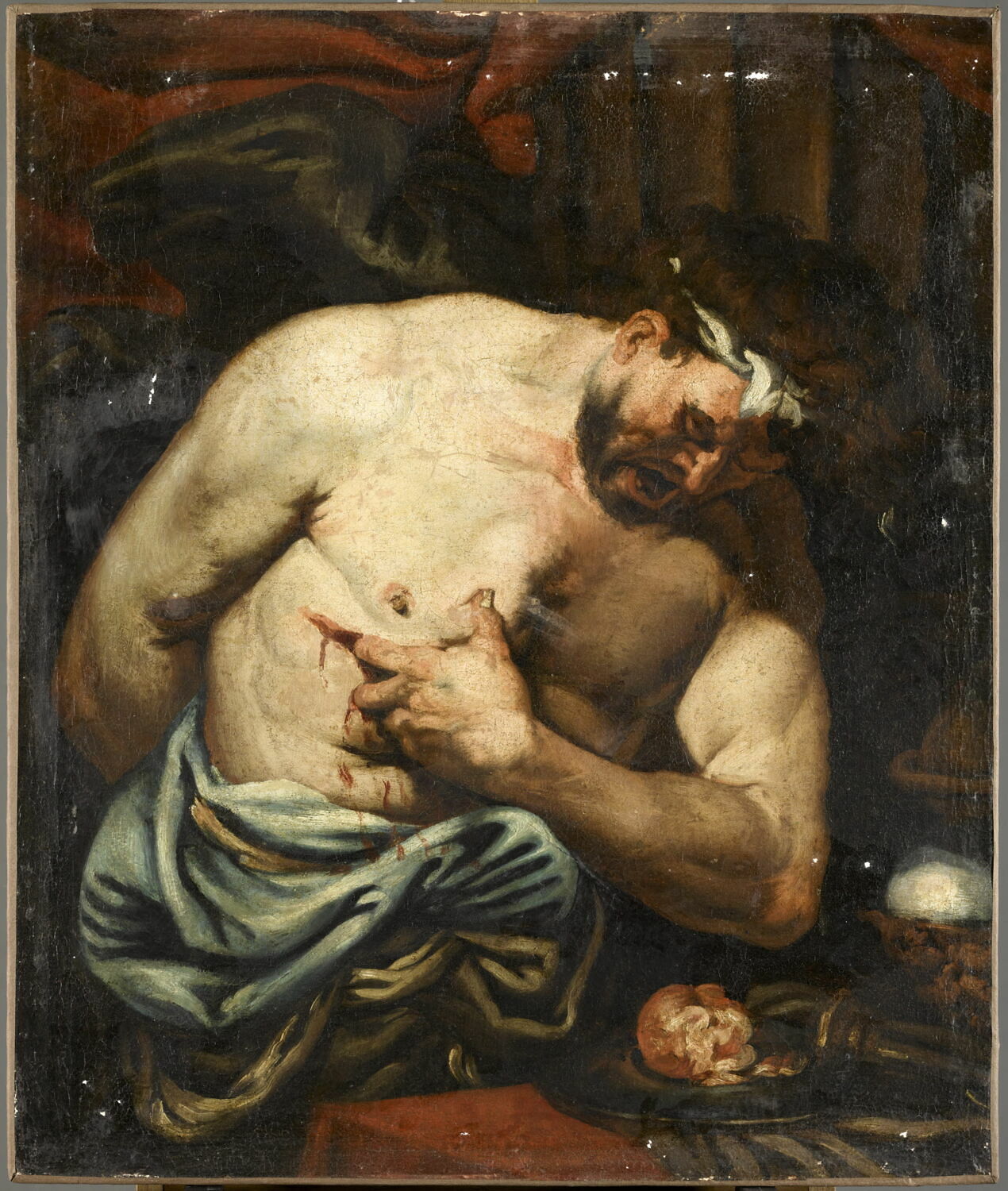 scène historique (Caton d'Utique, agonie, blessé, suicide)