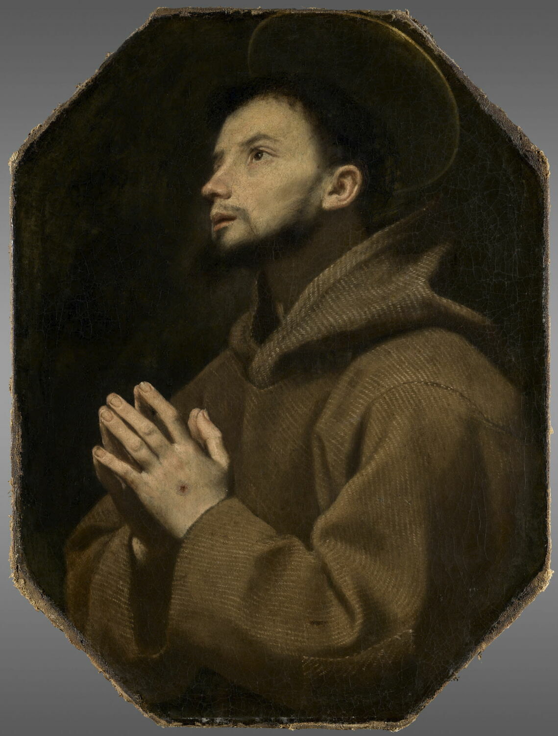 figure (saint François d'Assise, à mi-corps, de profil, prière, stigmates)