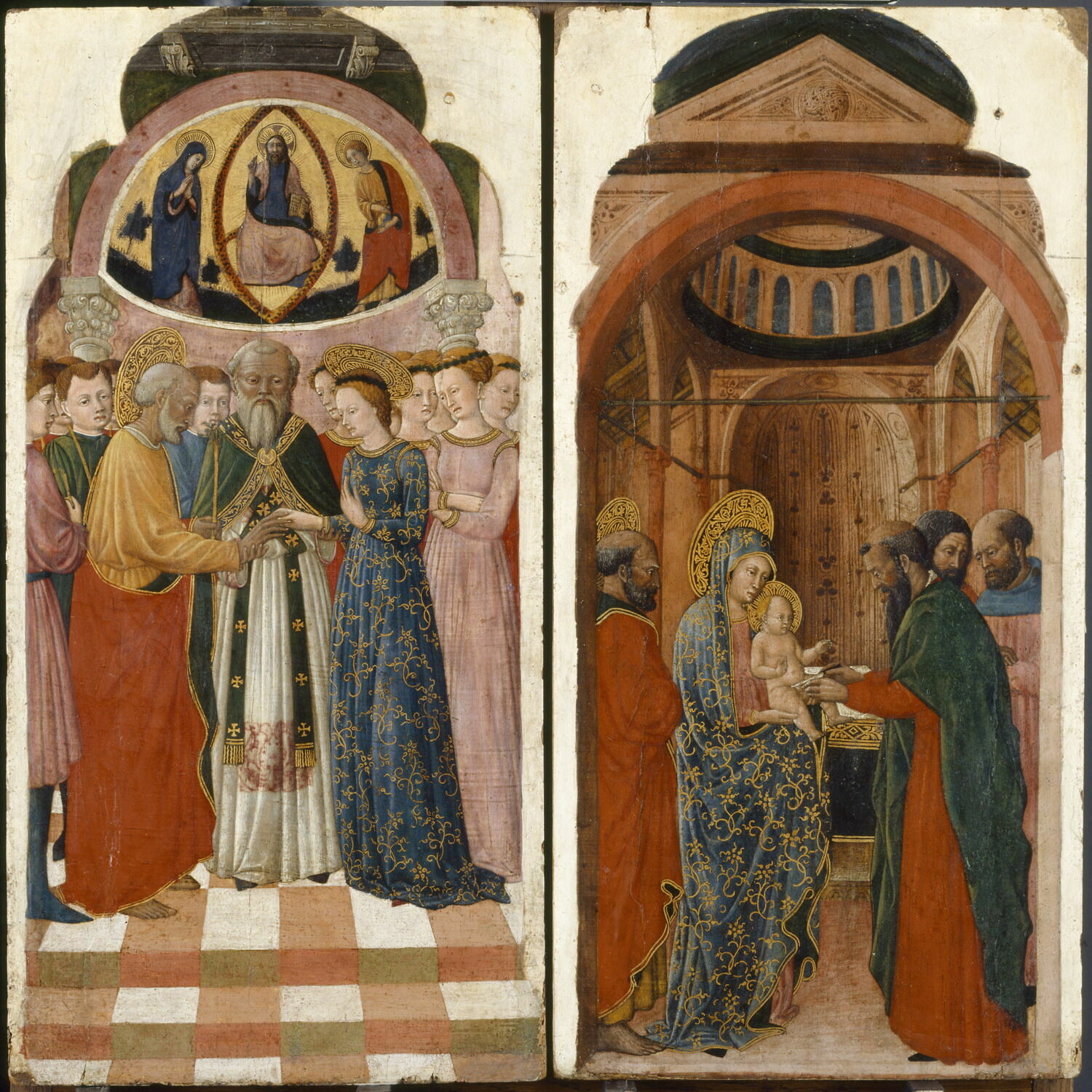 fait partie des douze scènes de la vie de la Vierge ayant appartenu à ce retable et conservées au musée du Louvre