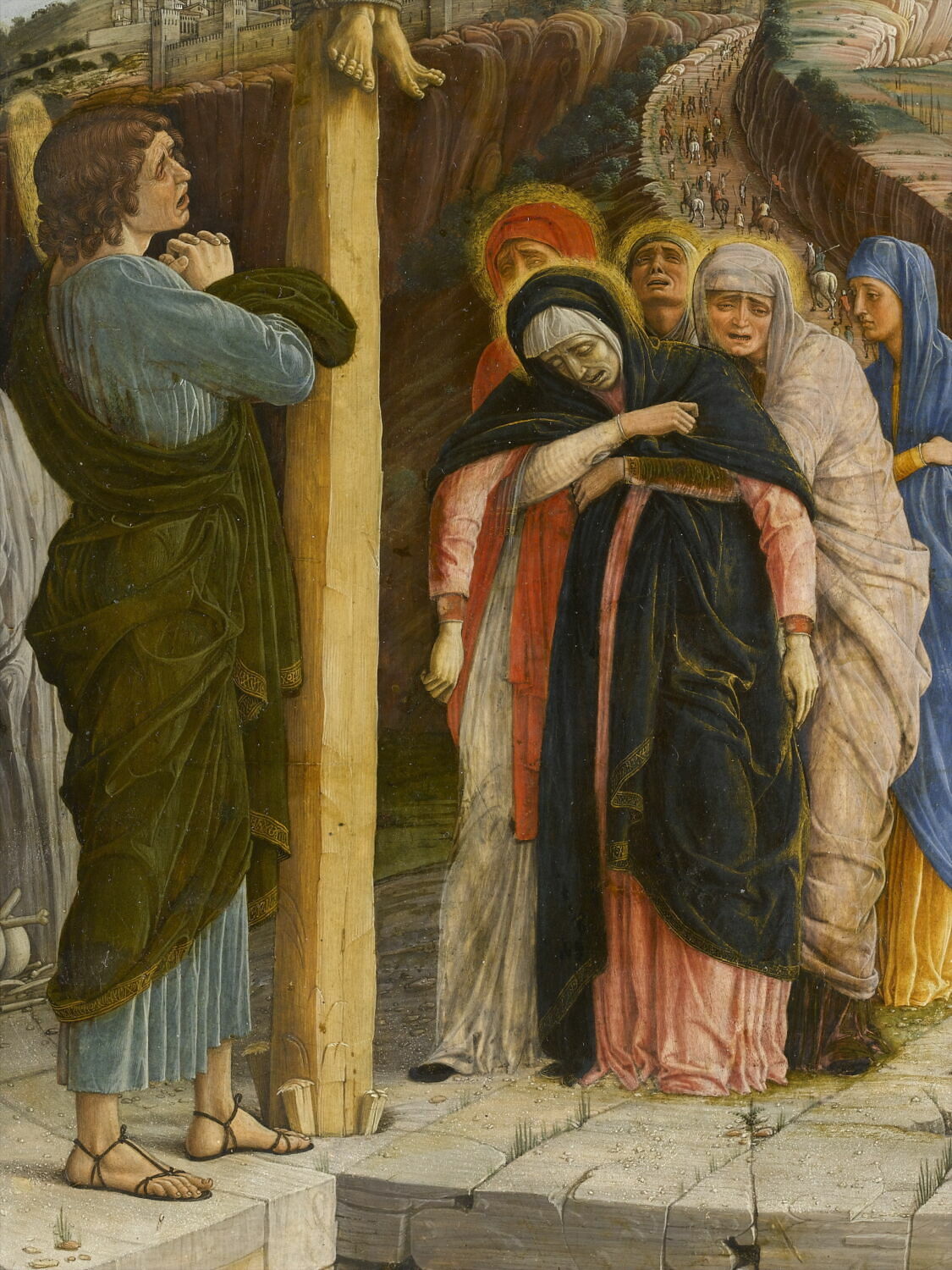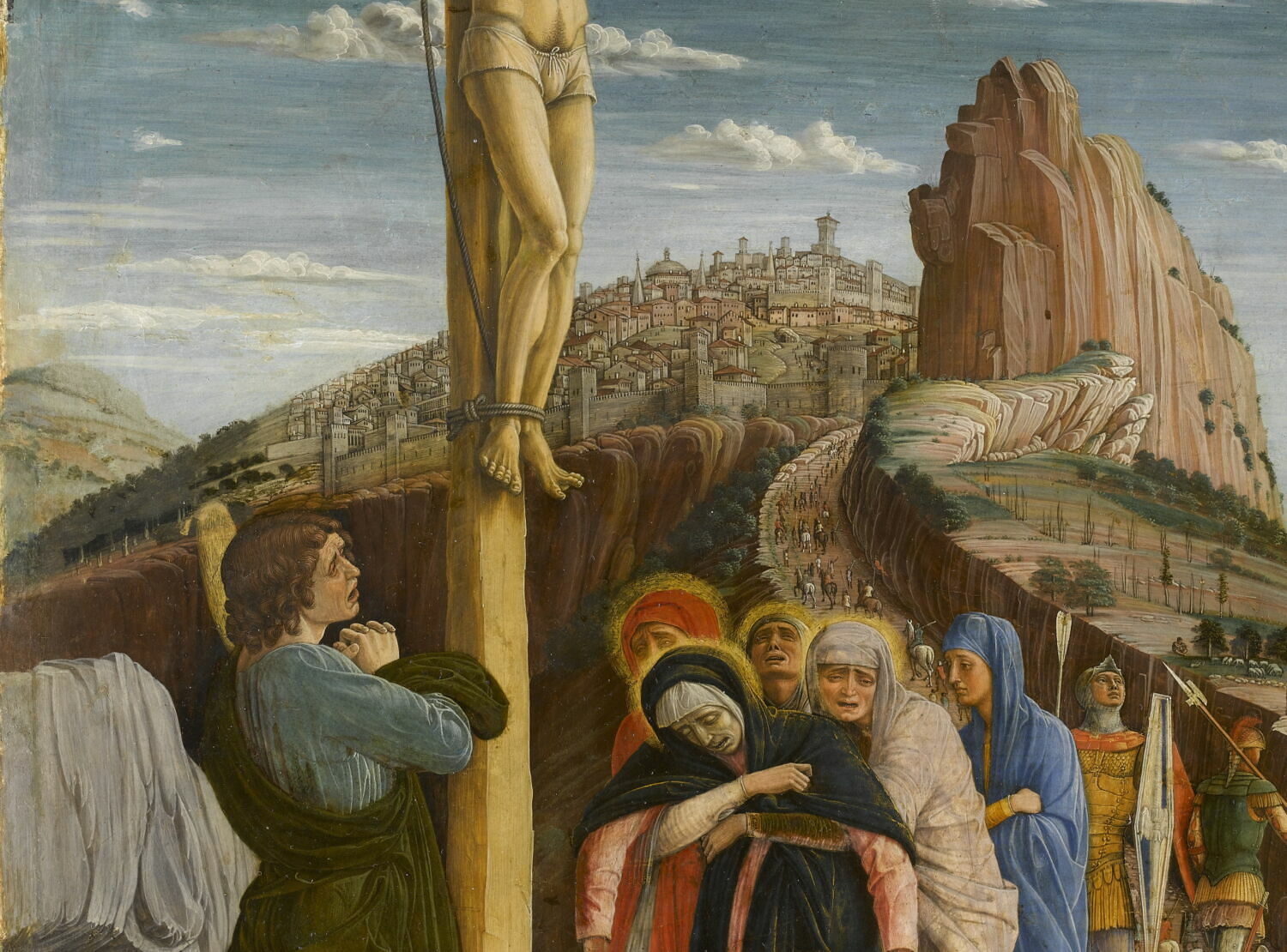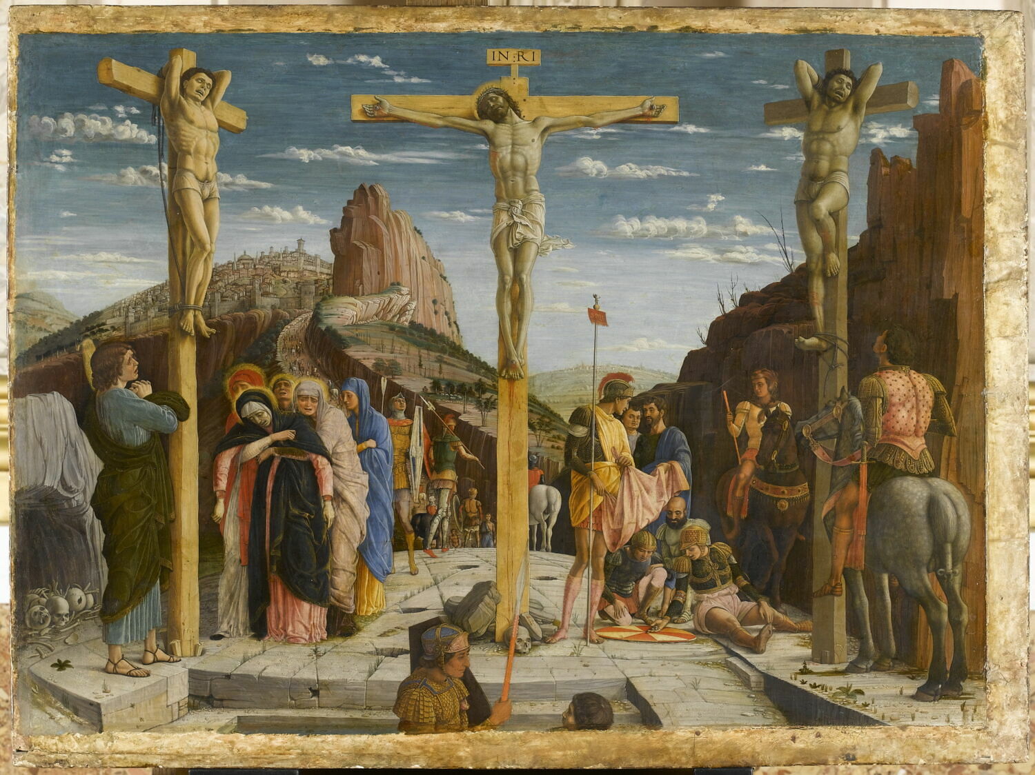 élément central de la prédelle d'un retable commandé par le protonotaire Gregorio Correr pour le maître-autel de l'église San Zeno de Vérone;panneaux principaux du retable restés en place : la Vierge et l'Enfant entourés d'anges, les saints Pierre, Paul, Jean l'évangéliste et Zénon, les saints Benoît, Laurent, Grégoire et Jean-Baptiste;autres éléments de la prédelle : le christ au jardin des oliviers, la résurrection (Tours, musée des beaux-arts);gravé par Landon en 1809 et 1824