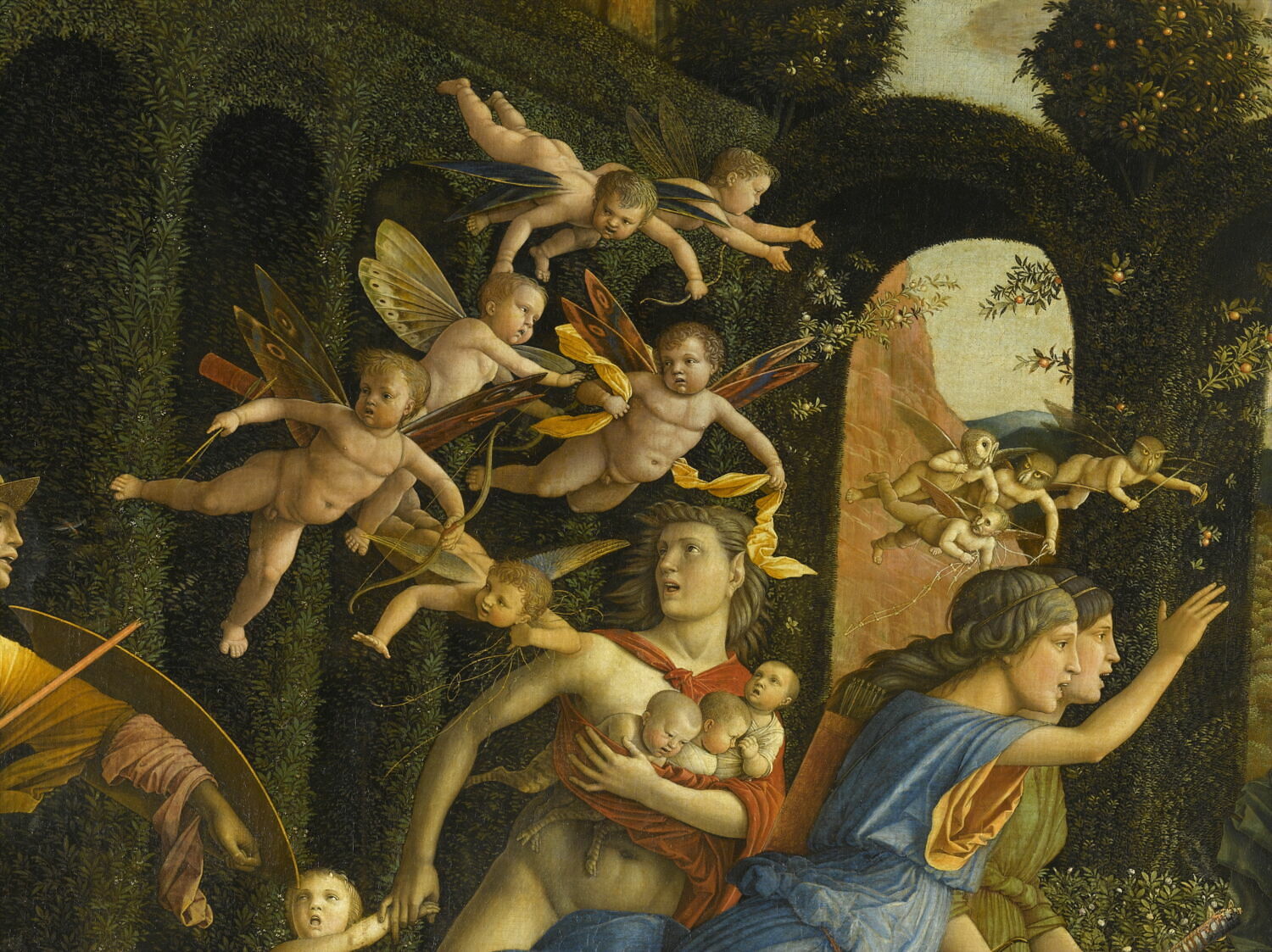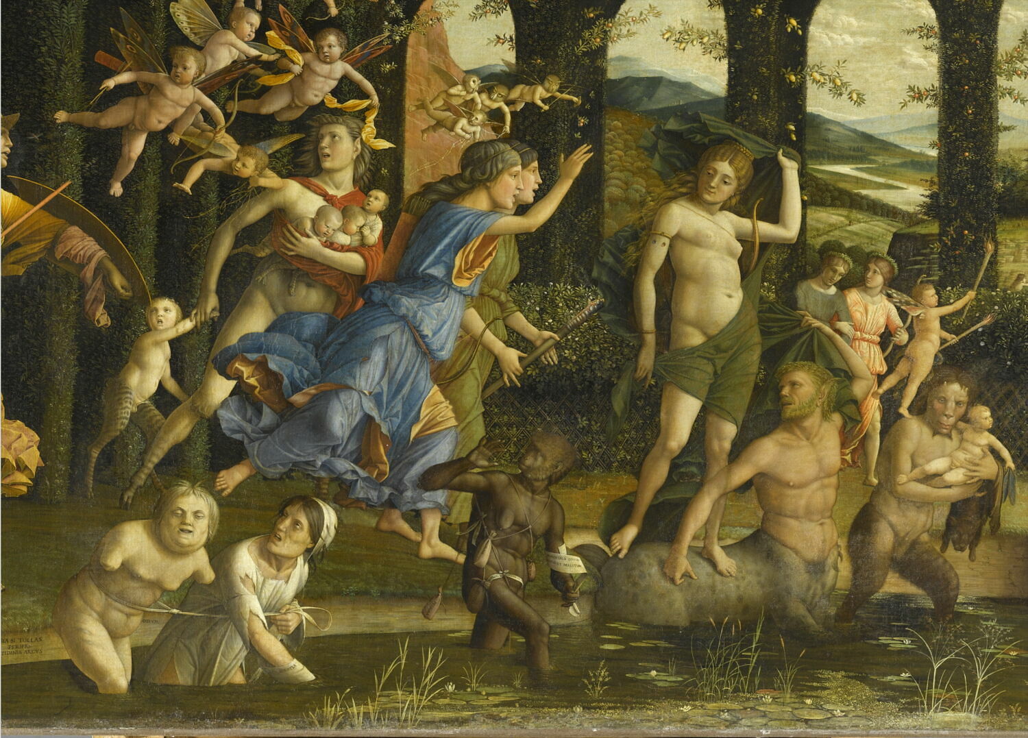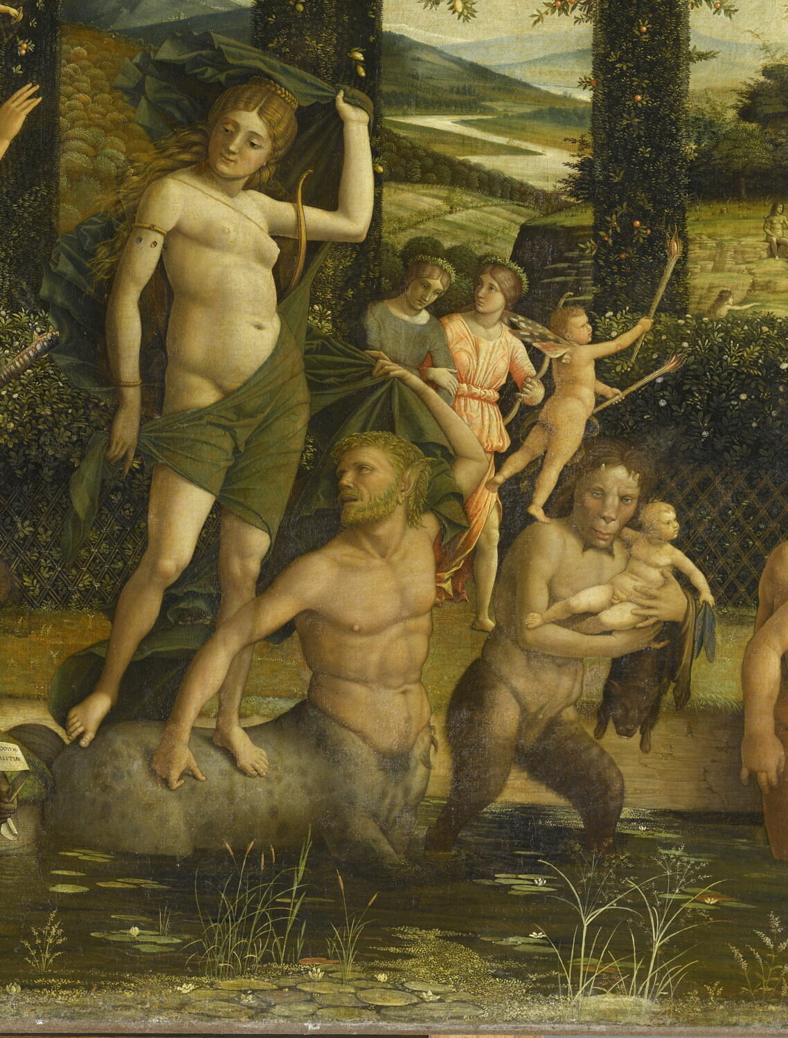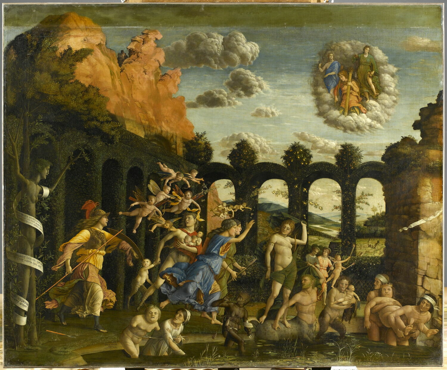 appartenait à une série de sept tableaux qui ornaient le studiolo de la marquise Isabelle d'Este au palais ducal de Mantoue ; numéros d'inventaire des autres éléments : inv 370, inv 255, inv 256, inv 722, inv D5926, inv D5927