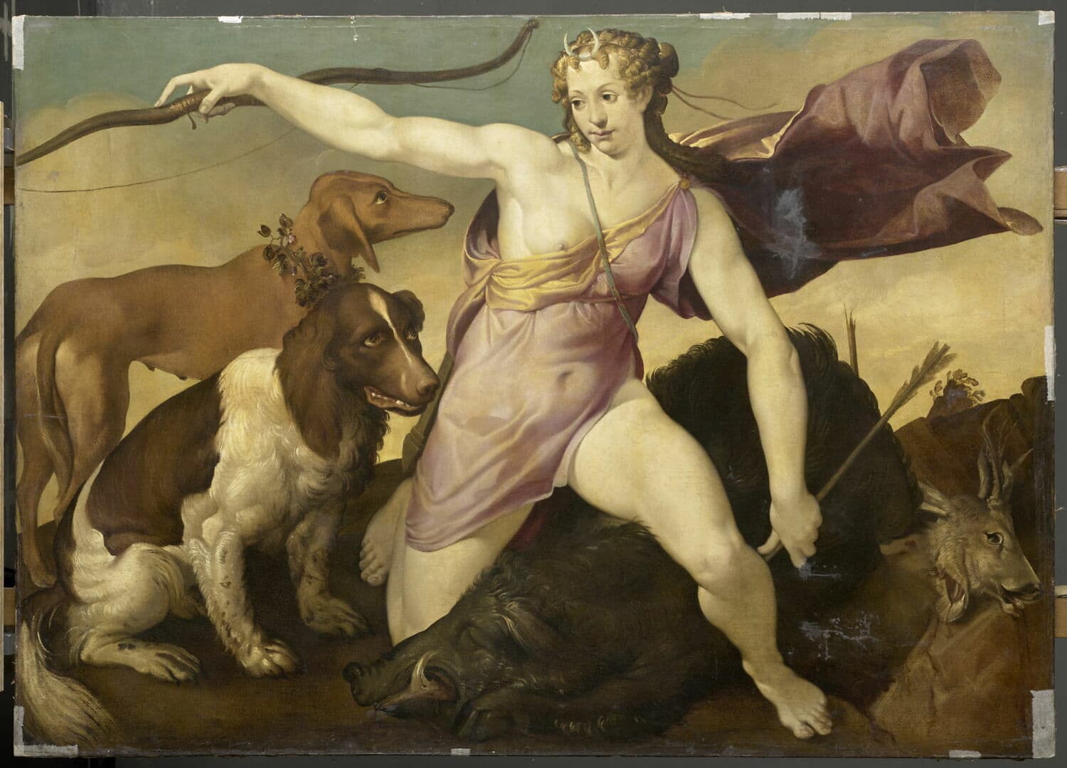 Bologne, 1529 ; Bologne, 1592 ; peintre nordique influencé par la deuxième école de Fontainebleau (Sterling-Adhémar II 107) ; sans doute participation de l'atelier pour les chiens