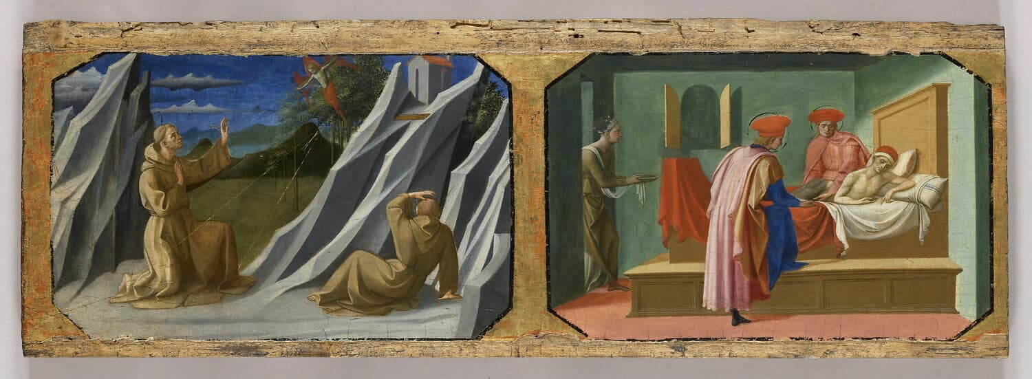 SAINT FRANCOIS D'ASSISE RECEVANT LES STIGMATES ; SAINT COSME ET SAINT DAMIEN SOIGNANT UN MALADE