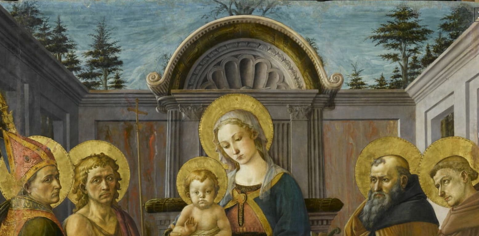 POP | Plateforme ouverte du patrimoineLA VIERGE ET L'ENFANT ENTRE SAINT ZANOBIE (?) , SAINT JEAN-BAPTISTE, SAINT ANTOINE ABBE ET SAINT FRANCOIS