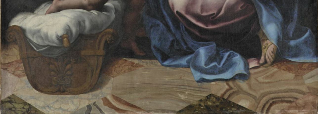 Romano : Rome, 1499 ; Mantoue, 1546 ; Raphaël a contrôlé entièrement l'exécution ; le petit saint Jean et sainte Elisabeth sont dûs à Giulio Romano