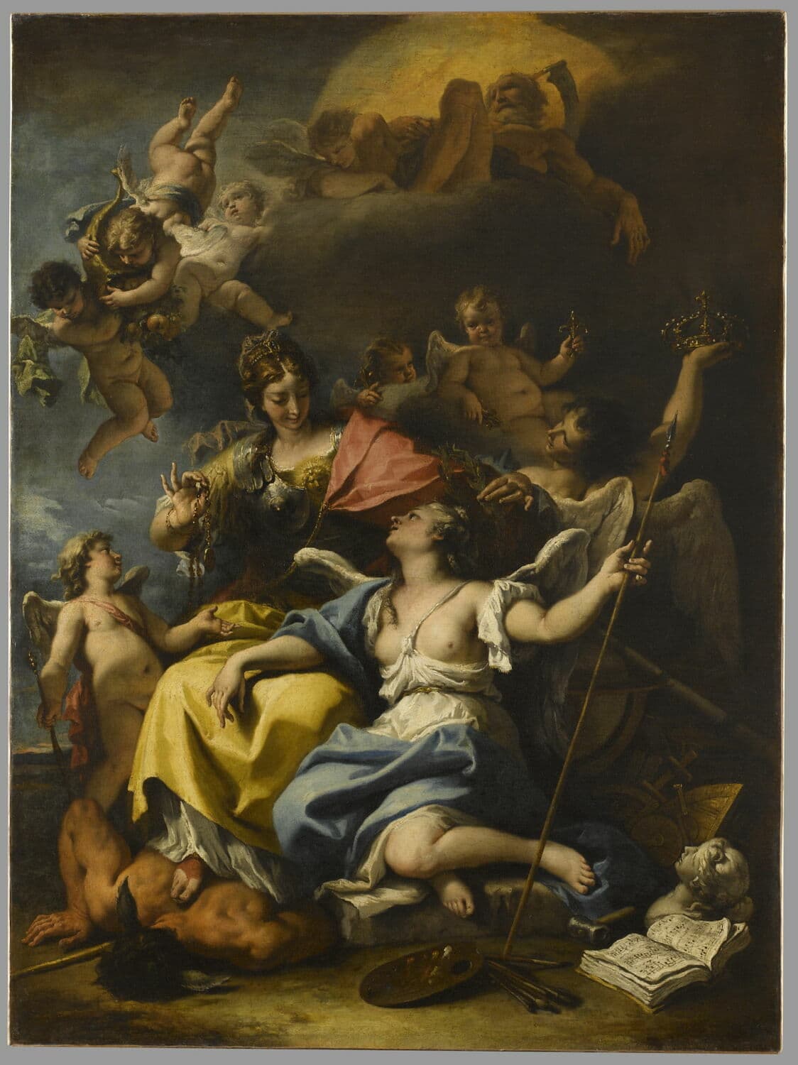 POP | Plateforme ouverte du patrimoineALLEGORIE DE LA FRANCE, SOUS LA FIGURE DE MINERVE (LA SAGESSE) QUI FOULE AUX PIEDS L'IGNORANCE ET COURONNE LA VERTU GUERRIERE