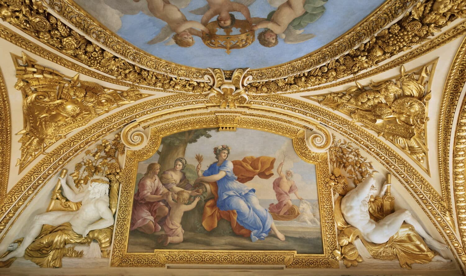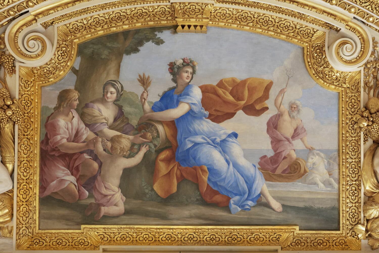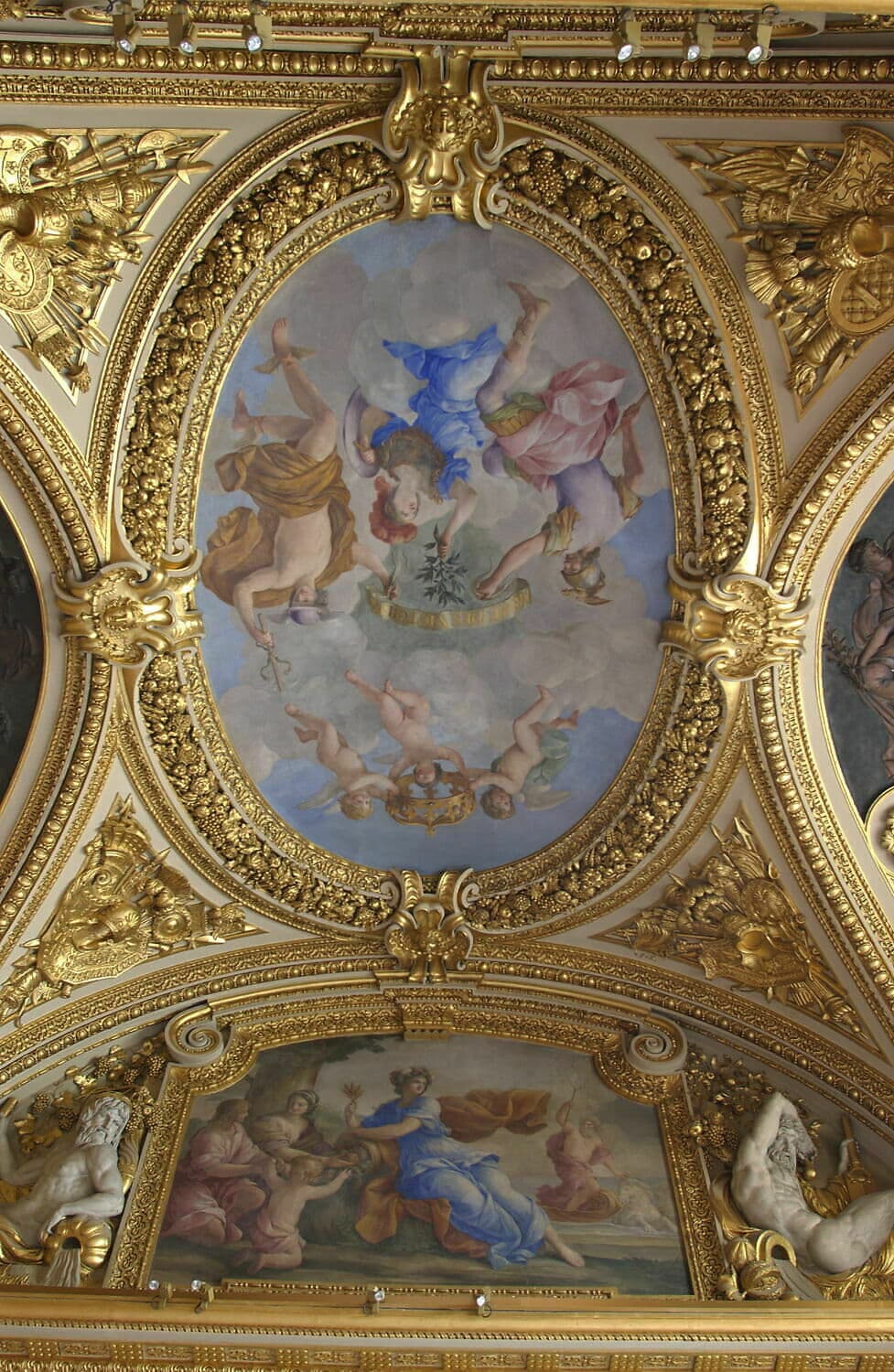 POP | Plateforme ouverte du patrimoineAllégorie du traité des Pyrénées ou La paix fruit de la guerre ; La paix mettant le feu à un monceau d'armes ; La déesse de l'agriculture encourageant les travaux de la campagne