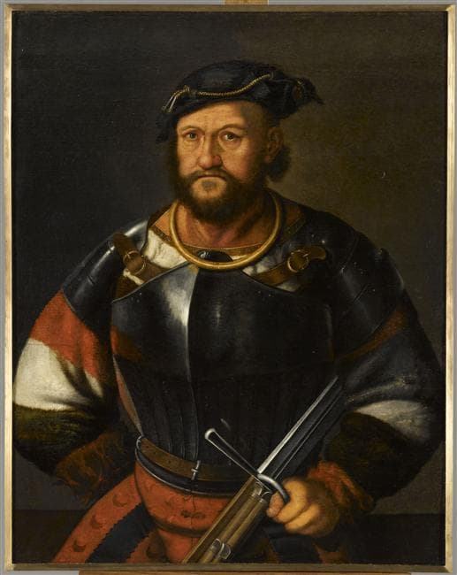 PORTRAIT D'UN HOMME D'ARMES EN BUSTE TENANT UNE ARBALETE