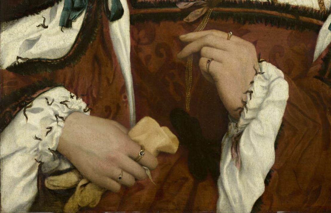 portrait d'inconnu (femme, en buste, de face, coiffure, bijou, gant, effet de tissu, Italien, ?)